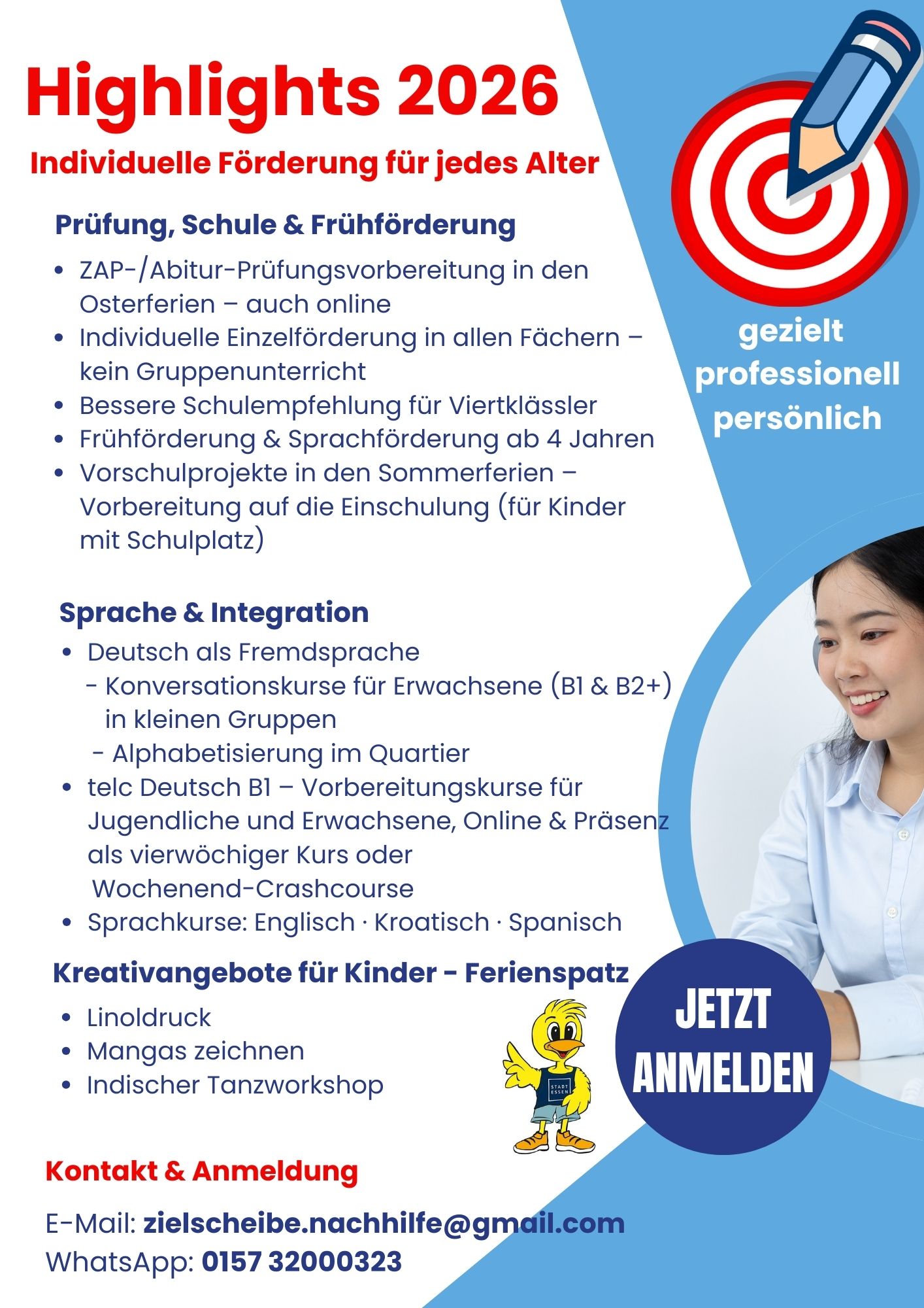 Highlights 2026 von root | Feb. 7, 2026 | Aktuelles | 0 Kommentare Highlights 2026 – Individuelle Förderung für jedes Alter! Kommentar absenden Antwort abbrechenDeine E-Mail-Adresse wird nicht veröffentlicht. Erforderliche Felder sind mit * markiertKommentar * Name * E-Mail-Adresse * Website Meinen Namen, meine E-Mail-Adresse und meine Website in diesem Browser für die nächste Kommentierung speichern.